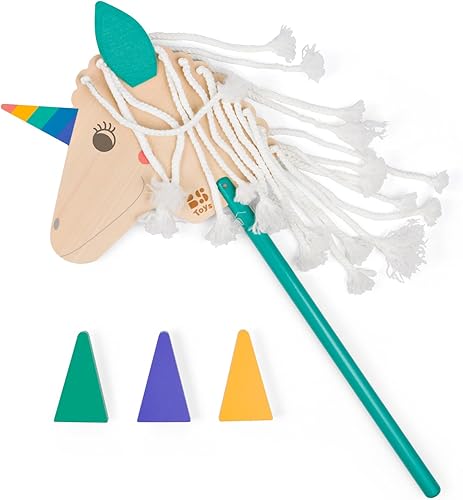 BS Toys Hobby Unicorn - Wooden Horse with 3 Colourful Cones for Children, Motor Skills Toy, Outdoor Toy, Riding Fun