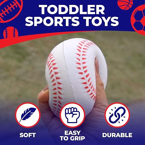 Toysery Foam Sports Balls Toddler Toys Set with Carry Bag - Includes Football, Soccer Ball, Tennis Ball, Basketball, Baseball, Kickball, & 3 Fresbee Discs - Soft Balls for Kids and Toddlers Ages 1-3