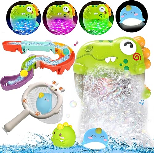 Toddler Bubble Bath Toys, Light Up Bath Bubble Machine Toy for Kids Age 3-5 Bathtub Toy Slide Dinosaur Bubbles Maker with Music Floating Animal Water Toys 3 4 5 Year Old Boy Girl