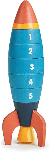 Mentari Toys - Stacking and Counting Rocket - 10pcs Space-Themed Ring Stacker Toddler Toy - Wooden Stacking Rings - Boost Fine Motor Skills and Early Counting Skills - Toddler Educational Toy - Age 3+