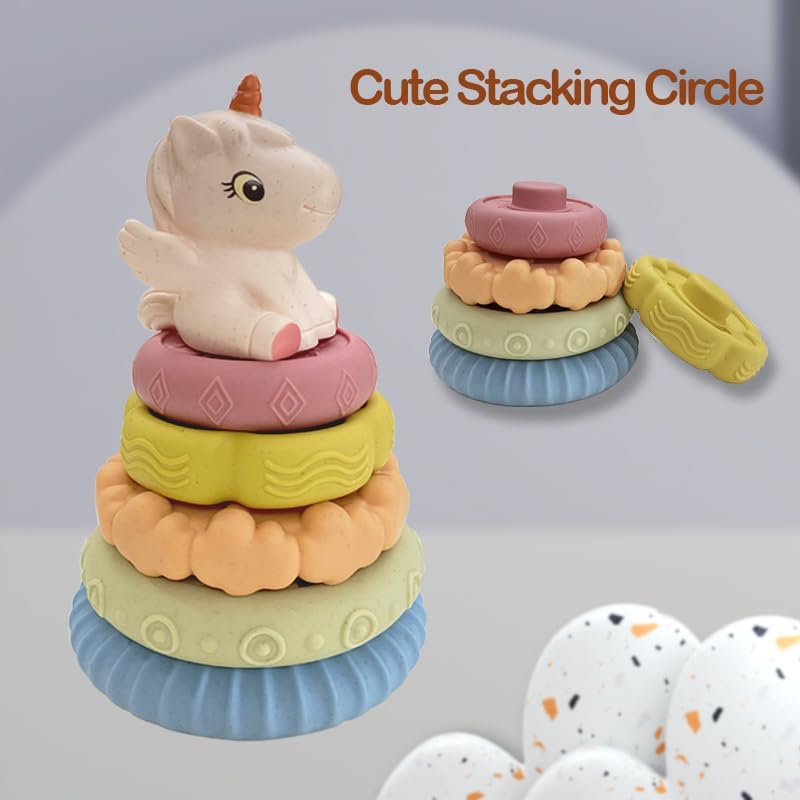 Baby Stacking Nesting Toys, Soft Squeeze Building Circle with Pink Horse, Baby Teething Toy Sensory Early Educational Toys for Newborn Toddlers