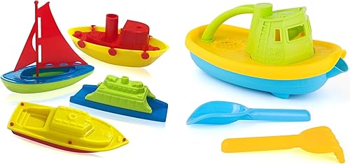 ArtCreativity Boat Bath Set - Includes 4 Cute Sailing Boats & 1 Tug Boat with 1 rake and 1 Shovel