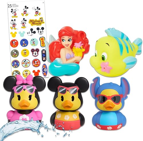 Disney Duckaloos Collection Set - Bundle with 3 Disney Rubber Duck Mini Figures for Kids, Adults Plus Squirt Toy and More | Collectible Duckalooz