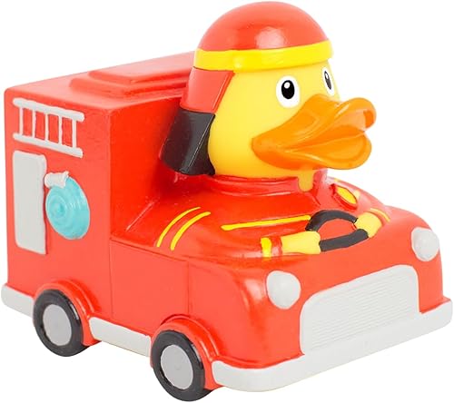 3 Inch Fire Truck Rubber Duck Bath Toy, Collectable, Fun for All Ages, Auto Dash Decoration, Crusing Vacation Gift, Party Favors, Office, School, Home
