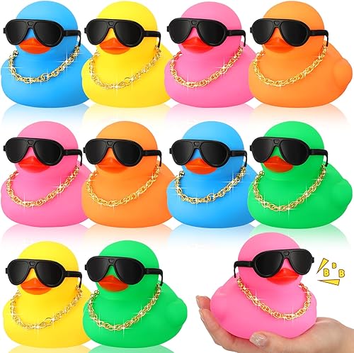 10 Sets Jumbo Rubber Ducks with Sunglasses 5 Inch Giant Squeaky Rubber Ducks Big Floating Bathtub Toys for Shower Birthday Party Favors Swimming Pool(Multicolor)