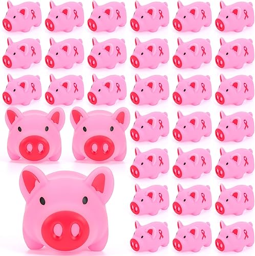 100 Pcs Breast Cancer Awareness Accessories Bulk Mini Rubber Pig Pink Ribbon Cute Squeaky Bathtub Pigs for Women Friend Gift Charities Public Accessories Halloween Christmas Party Birthday