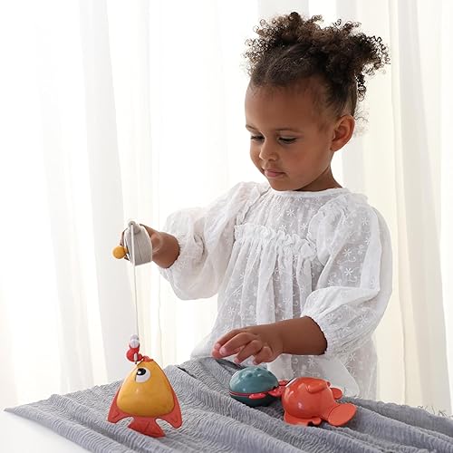 Tolo Bio Funtime Fishing Set | Eco-Friendly Bath Toy for Toddlers | Magnetic Fishing Rod, 3 Bubble-Blowing Fish, Worm | Skill-Building Water Play | Durable, Safe, Sustainable Material | Ages 18M Up