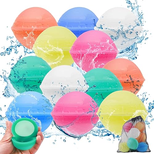 12PCS Reusable Water Balloons Quick Fill, Pool Bath Toys for Kids, Summer Water Toy for Boys Girls, Water Bomb Balls Family Water Ballon Fights for Summer Party, Pool Party, Camping Trip