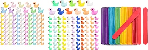 540Pcs Glow-in-The-Dark & Multi-Colored Miniature Ducks and Jumbo Craft Sticks Mega Set for Creative Play and Crafting