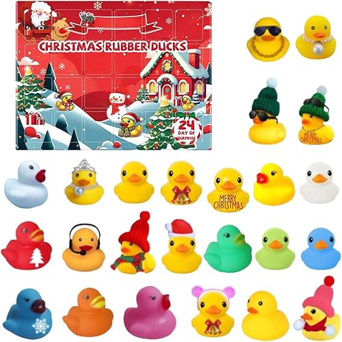 Rubber Duck Advent Calendars 2025 | 24 Days Of Christmas Ducks Countdown Calendar | Cute Holiday Rubber Duck Bath Toys | Christmas Stocking Filler Party Favors for Girls and Boys
