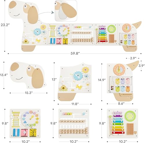 Wooden Dog Wall Busy Board Panels, Sensory Wall Busy Board for Toddlers 1-3, Montessori Learning Activity Center, Educational Toys for for Kids Room, Preschool & Daycare