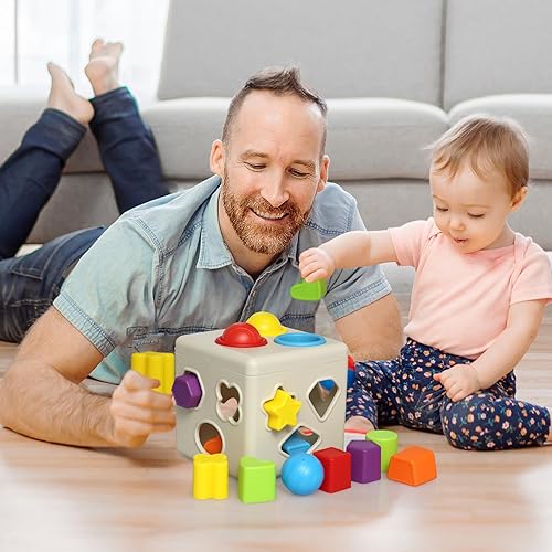 Kiddie Play Shape Sorter Learning Toys for Toddlers 16 pcs Baby Plastic Blocks Shape Sorting Cube