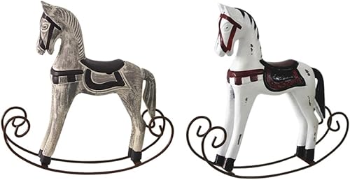 ERINGOGO 2pcs Wooden Rocking Horse Figurines Handmade Retro Decor for Home White Waddle Horse Ornaments for Desktop Adornment and Unique Ideas