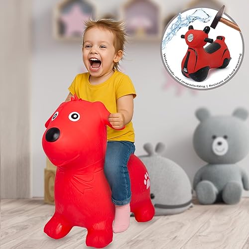 Jamara 460454 - Bouncy Animal Dog Red with Pump - Promotes Balance and Motor Skills, Animal Ears as A Support, Robust, Easy-Care, Up to 50 kg