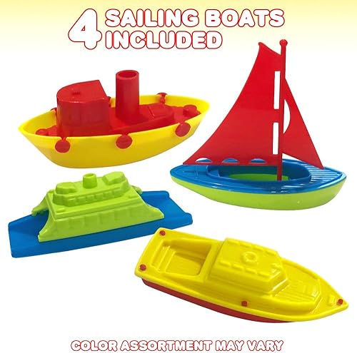 ArtCreativity Boat Bath Set - Includes 4 Cute Sailing Boats & 1 Tug Boat with 1 rake and 1 Shovel
