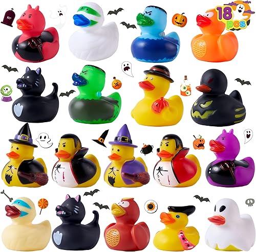 JOYIN 18 PCS Halloween Rubber Ducks, Halloween Ducks Toys for Trick or Treating Goodie Bag Fillers, Bathtub Toys Duckies for Halloween Party Favors Decorations, School Classroom Game Prizes