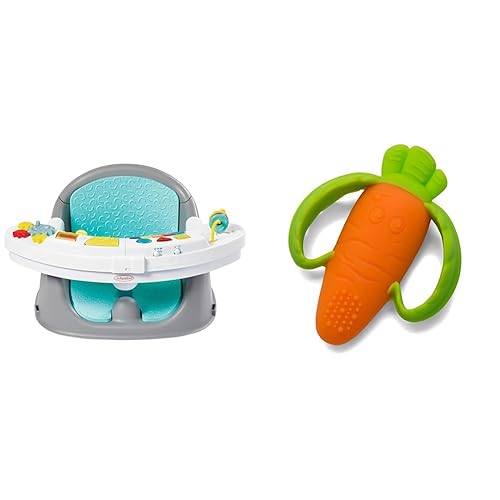 Infantino Music & Lights 3-in-1 Discovery Seat and Booster - Convertible, Infant Activity & Lil' Nibbles Textured Silicone Baby Teether - Sensory Exploration and Teething Relief