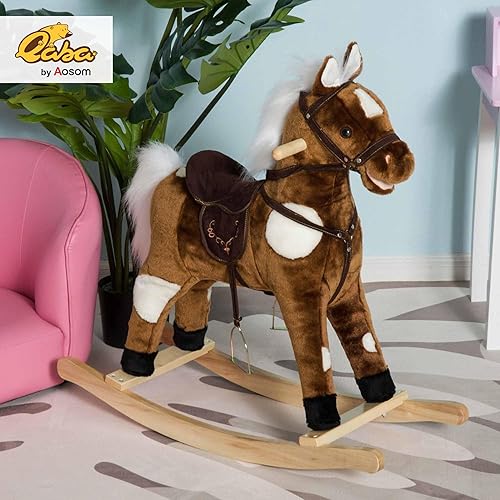 Rocking Horse with Sound & Motion, Gift for Birthday/Christmas/New Year, Interactive Ride On Horse for Indoor Playroom, Built-in Music (Light Brown, Middle)