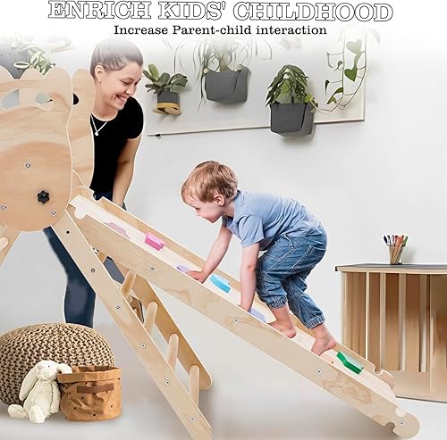 Montessori Pikler Triangle Set-Foldable Baby Climbing Gym with Ramp,Ladder-Toddler Climber Indoor Jungle Gym& Educational Toy