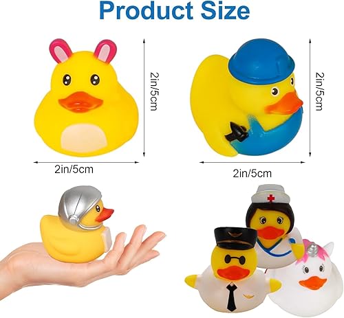 2-inch Cute Ducklings: These children's rubber ducks are about 2 inches each. Suitable for children of all ages and used as school gifts, class prizes, birthday party supplies, carnival prizes, treasure chest toys and more, you can share colorful cute ducks with friends and family.