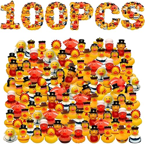 100 Pack Thanksgiving Rubber Ducks 2025 bulk in Bulk - Includes 9 duckies in various colors and characters;They are great for playing with especially during Thanksgiving day parties, school carnivals or parties. Your Thanksgiving student will be entertained for hours