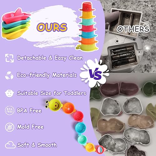 【Early Education Learning】 Promote development with educational stacking cups for 1-3 year olds: teaches size ordering, colour sorting and motor skills. Boat demonstrates buoyancy for preschool toy exploration. The perfect water table toys for toddlers 1-3 to stimulate curiosity during bath time or water sensory play.