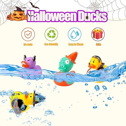 Mini Halloween Ducks: Halloween ducks mini, height 1.5-2inches, funny and cute,no-hole design, no need to worry about it not floating in the bathtub or pool, easy to clean