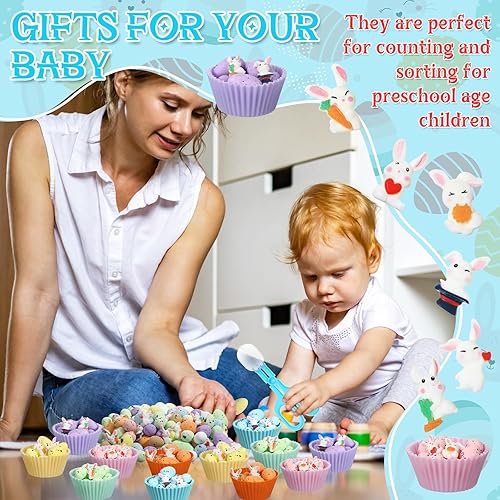 Easter Themed Design: our sensory bin fillers set contains colorful artificial Easter eggs and adorable resin bunny decors, festive and delightful, filling the room with the joyous atmosphere of Easter, making ideal party decorations and activities during the festival, and adding a festive touch to regular playtime