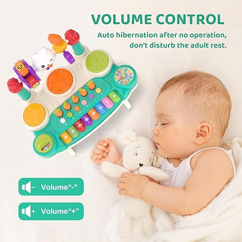 LESSETI 20-in-1 Musical Toy: Combines piano, drum and creative modes (Animal Twist & Turn, Rotating Clock, Carrot-Pulling Game) with lights and tactile play.Ideal sensory toy for ages 6-12 months+