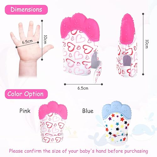 Safe Material: Our baby teether are made of food grade silicone. Resistant to high and low temperatures, Non-toxic, BPA Free, Teething mitts also keep baby safe from scratches on the face