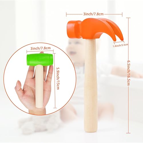 Funny fake hammer - The wooden hammer mallets have bright colors, the child will love hammer toy them and pretend they are fixing stuff. Suitable for squeezing and relieving pressure