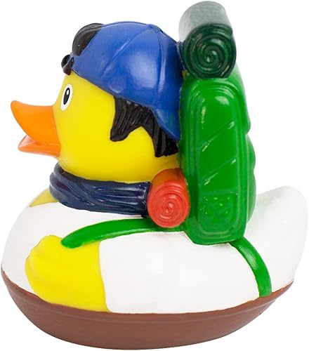 Whimsical Design: This 3-inch Yellow, white, rubber duck features back pack.