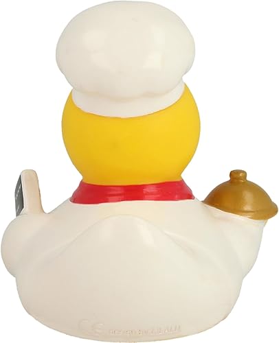 Whimsical Design: This 3-inch white colored rubber duck features chef hat and spoon.
