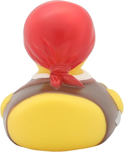 Whimsical Design: This 3-inch yellow duck features red cap, sword, and black patch over one eye.