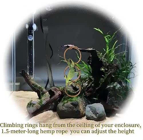 Climbing rings hang from the ceiling of your enclosure, 1.5-meter-long hemp rope you can adjust the height of the suspension freely for your snake to choose the ring they like and through it