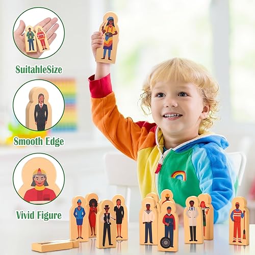 Crafted with Care: made from safe, reliable wood, the wooden people figures promise sturdiness while delivering a smooth and double sided print; Carefully crafted with your little one's safety in mind, these toys stand strong even in the face of vigorous playtimes! The longevity of the toys is an added advantage, serving your daughter and son fun filled playtime for years on end