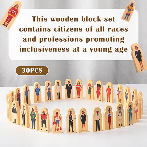 Exploring Vocations: this charming wooden toy set includes 30 people figures, in its vibrant display of color, truly captures the feature of diversity in professions; The toys offer an array of multiple careers, thus guiding the little ones through an early introduction to worldly vocations; A true gem, not just for play, but for educational purposes as well