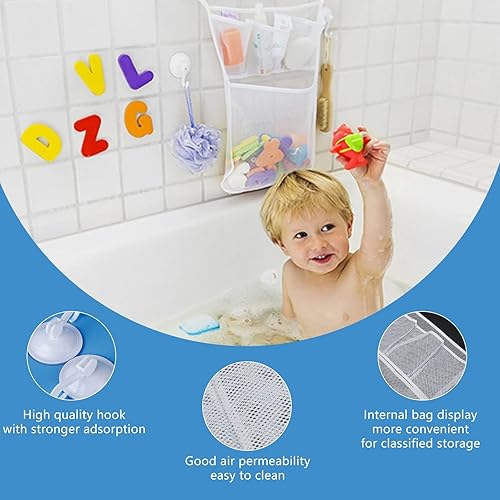 【Product Features】This is a toy storage bag necessary for baby's bath. The flat design makes better use of the bathroom space. It is waterproof and the bottom can leak. It is not afraid of water in the storage bag. When taking a bath, baby always puts toys into the storage bag.