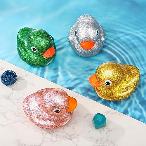 Package Includes: Our package includes 4 pcs 6.89 Inch glitter rubber ducks, each covered in glitter that sparkles in the sun, adding a beautiful color to your bathroom