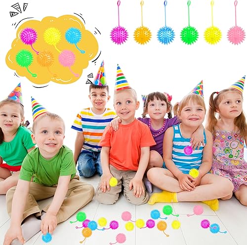 Safe material: Grow in the dark glitter balls are made of quality soft rubber, very elastic and flexible, safe quality, no smell, reliable and safe; The soft spiked surface is skin-friendly and can be touched at will without injury; Rubber cord can be worn on fingers or wrists as a catch for play