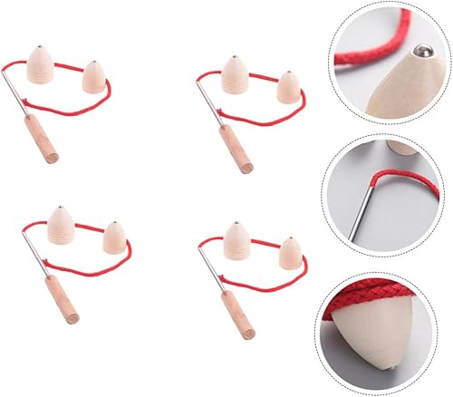 Wooden tops spinning--package includes 4 sets tops , each set includes 2 pieces of tops piece of rope,wooden tops