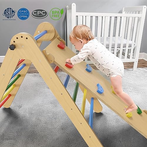 Large and Foldable Design: The Pikler triangle and climbing set fold easily for convenient storage, saving space when not in use. Ideal for indoor play and perfect for small homes or playrooms.