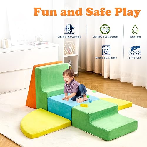 【Safe&Fun to Play】: Our climbing blocks for toddlers 1-3 are made from non-toxic and odorless fabric. Designed with hidden zippers to prevent scratching on children's soft skin, our blocks provide a reassuring and safe environment for play. With a focus on safety, our blocks are built without hard structures or sharp edges to protect children from bumps and injuries.Your child can safely play, toddle, and roll on this climbing toy that offers a soft and supportive surface, providing peace of mind for parents.