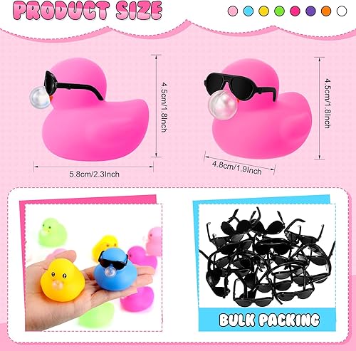 • Product Size: the size of a mini bath duck is about 5 cm/2 inch, which is a suitable size for children; These rubber ducks and small sunglasses can be stored together in a box, which will not take up too much space for storage; The next time you want to share toys with friends, you can take them out easily; It is also very convenient for children to store and will not be easily lost; It is small and light, easy to place at home, children's bedroom, living room, or take to school or travel