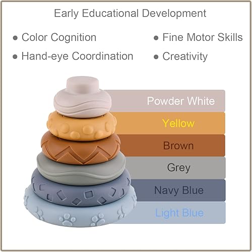 【STEM Early Educational Development】Each stacking ring with relief design on the surface, it good for babies' tactile experience. Develop their color cognition, enhance hand-eye coordination ability, and strengthen early education knowledge. A best baby Montessori toy.