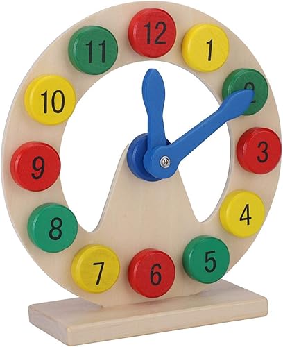 clock children wooden- WOODEN CLOCK: The colorful clock toy is made of sustainable wood, is non- and has smooth edges. Suitable for 3 years old and plus.