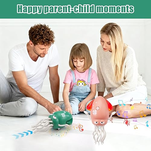 Smart Obstacle Avoidance for Continuous Play:Built-in intelligent sensors detect and avoid obstacles, allowing the toy to change direction and keep moving without interruption. As the octopus wiggles away, kids are encouraged to chase and interact, promoting physical activity and sensory growth for children ages 3 and up