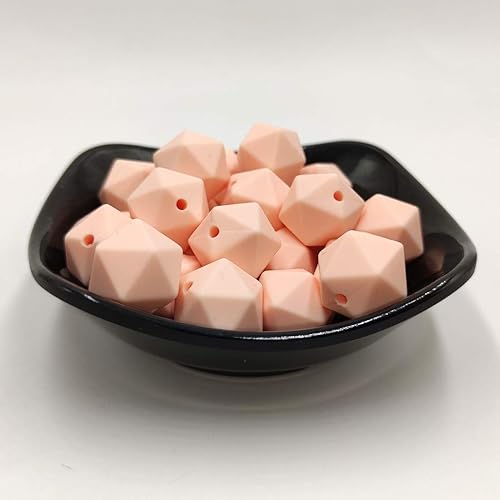 30pcs Light Pink Color 14mm Silicone Polyhedron Beads Silicone Geometry Icosahedron Beads for Mom Jewelry Necklace Making(Pink)