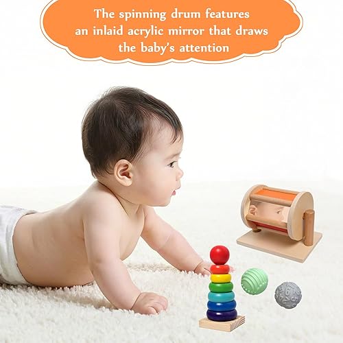Engaging Montessori Toys for Babies 6-12 Months: This wooden baby toys set includes 12 sensory toys: ,an object permanence box with a ball, a spinning rainbow drum, a spinning rainbow montessori, a colorful multiple shape puzzles toys,a rain maker toy,a flash card set and 6 sensory balls. These toys support your baby’s sensory development and encourage exploration and play