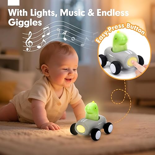 First Push & Go Cars for Little Hands: Friction-powered cars roll forward or backward with just a gentle push – Easy for baby to play independently and builds confidence, fine motor skills and learn cause-and-effect through fun, hands-on exploration